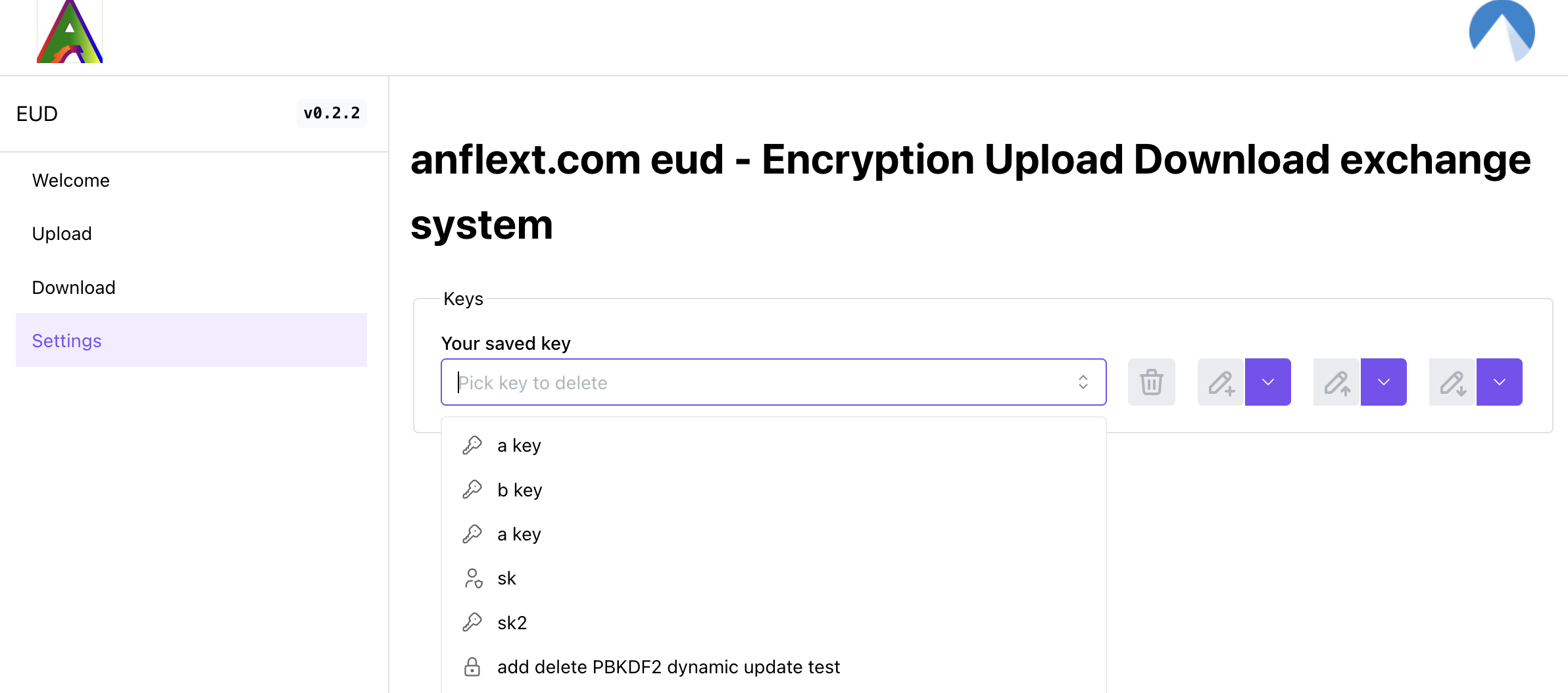 Upload the text or file with single password or stored key