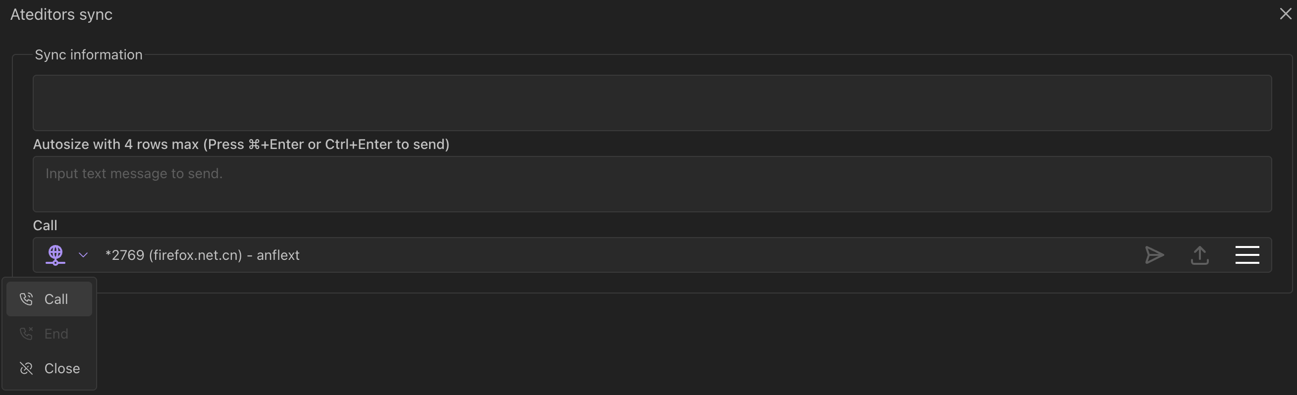 呼叫成功后,可以进行文字通信与文件传输: